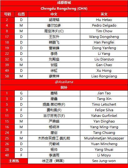 成都蓉城亞冠大輪換!三大外援坐鎮(zhèn)替補(bǔ)席,對(duì)手8名外援首發(fā)