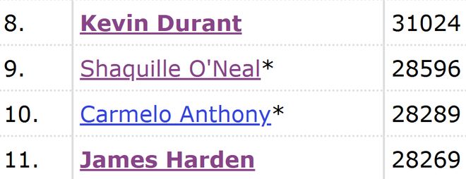 但事實(shí)是,他即將擠入歷史前十,正式奠定傳奇地位。自他蓄起濃密胡須以來,一路征程皆由得分書寫。他創(chuàng)造空間的能力、三分投射、殺入內(nèi)線的拋投,以及聰明制造犯規(guī)的技巧,不僅讓他成為當(dāng)代最頂尖的得分手之一,如今更足以躋身歷史級(jí)得分手行列。