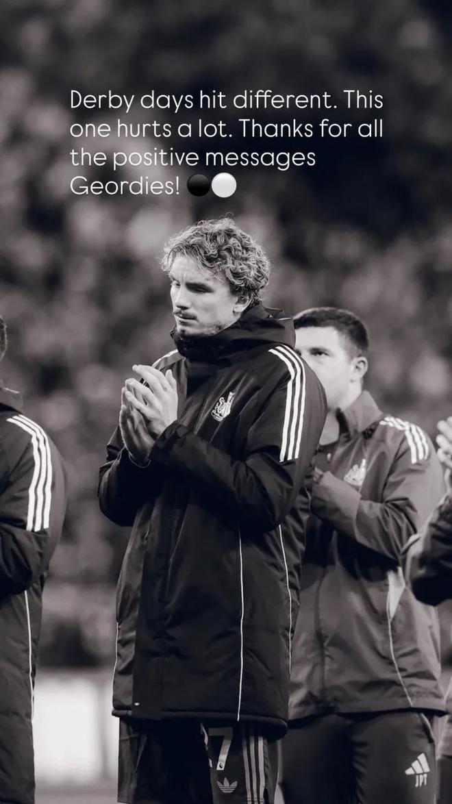 沃爾特馬德曬出圖片并寫道:“德比總是別樣滋味,這一場尤其令人心痛。感謝所有支持我的紐卡斯?fàn)柷蛎园l(fā)來的鼓勵信息?!?/p>